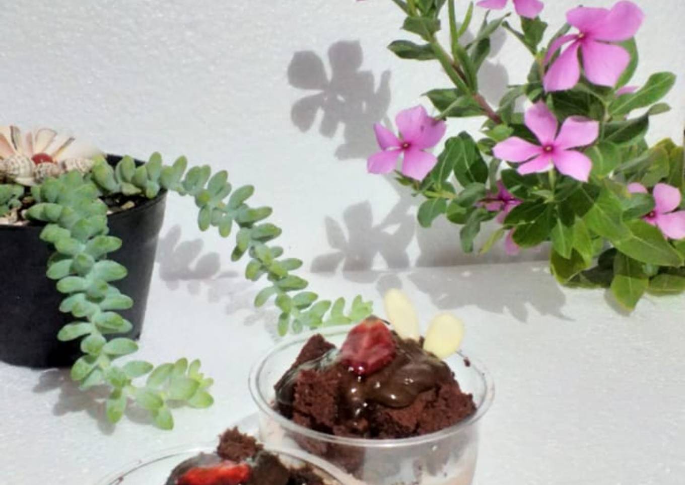 - Masukkan Ice cream strawberry, ice cream coklat, dan potongan almond cake kedalam gelas. Tata sesuai keinginan. Selamat Menikmati