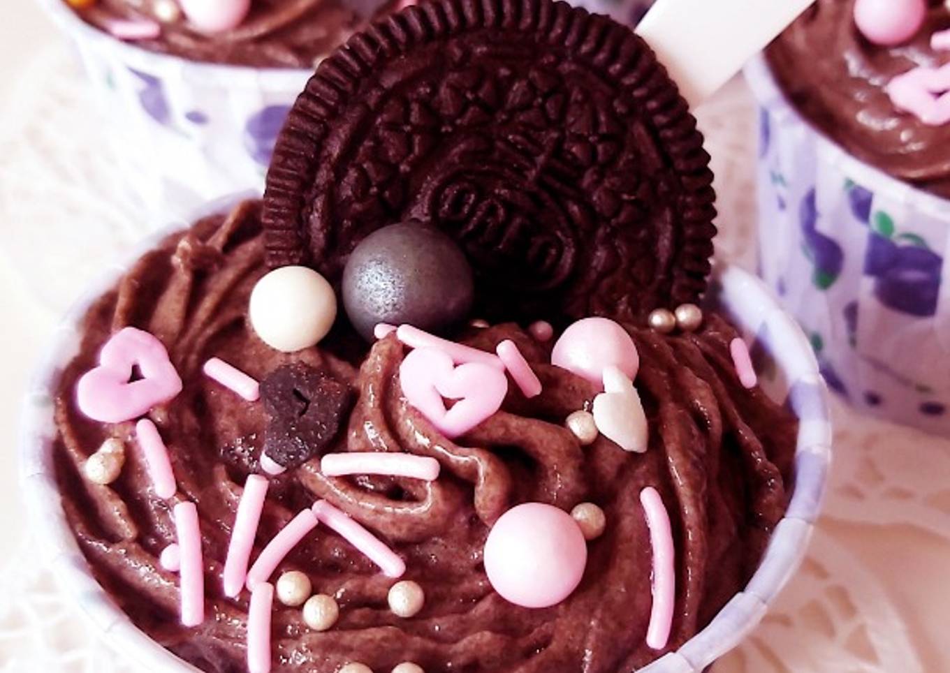 - Masukkan adonan ice cream kedalam piping bag. isi cup dengan menggunakan spuit mawar