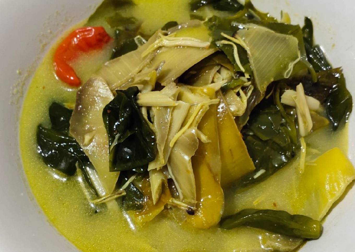 - Tumis bumbu halus hingga wangi lalu masukkan daun salam dan lengkuas geprek. Saat bumbu sudah matang masukkan air biarkan mendidih, lalu masukkan jantung pisang dan daun so dan cabe rawit utuh. Tambahkan garam, gula, kaldu, dan lada. Masukkan fiber creme aduk dan biarkan hingga tanak, jangan lupa koreksi rasa.