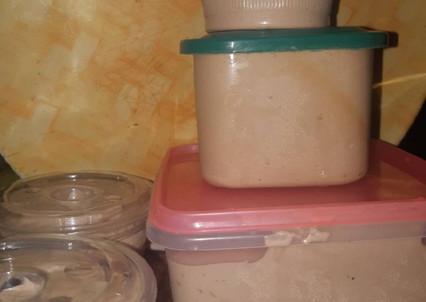 - Campur susu, gula, tepung, air dan didihkan dengan air sedang. Tunggu hingga dingin dan tuang ke wadah/baskom untuk diletakan di freezer sampai beku +‐ 8-12 jam