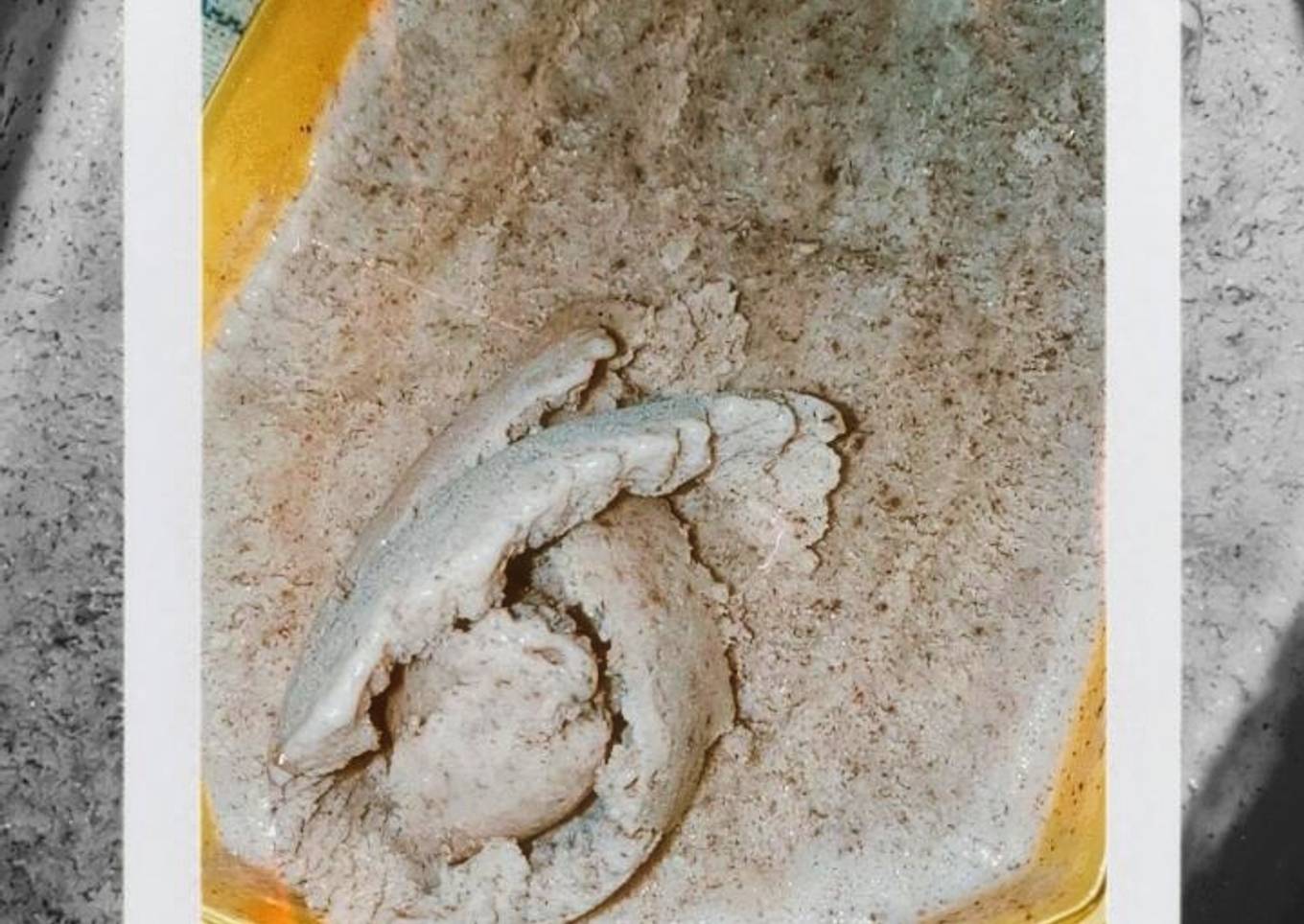 - Setelah tercampur merata, letakkan di wadah lalu diamkan di freezer hingga beku.
