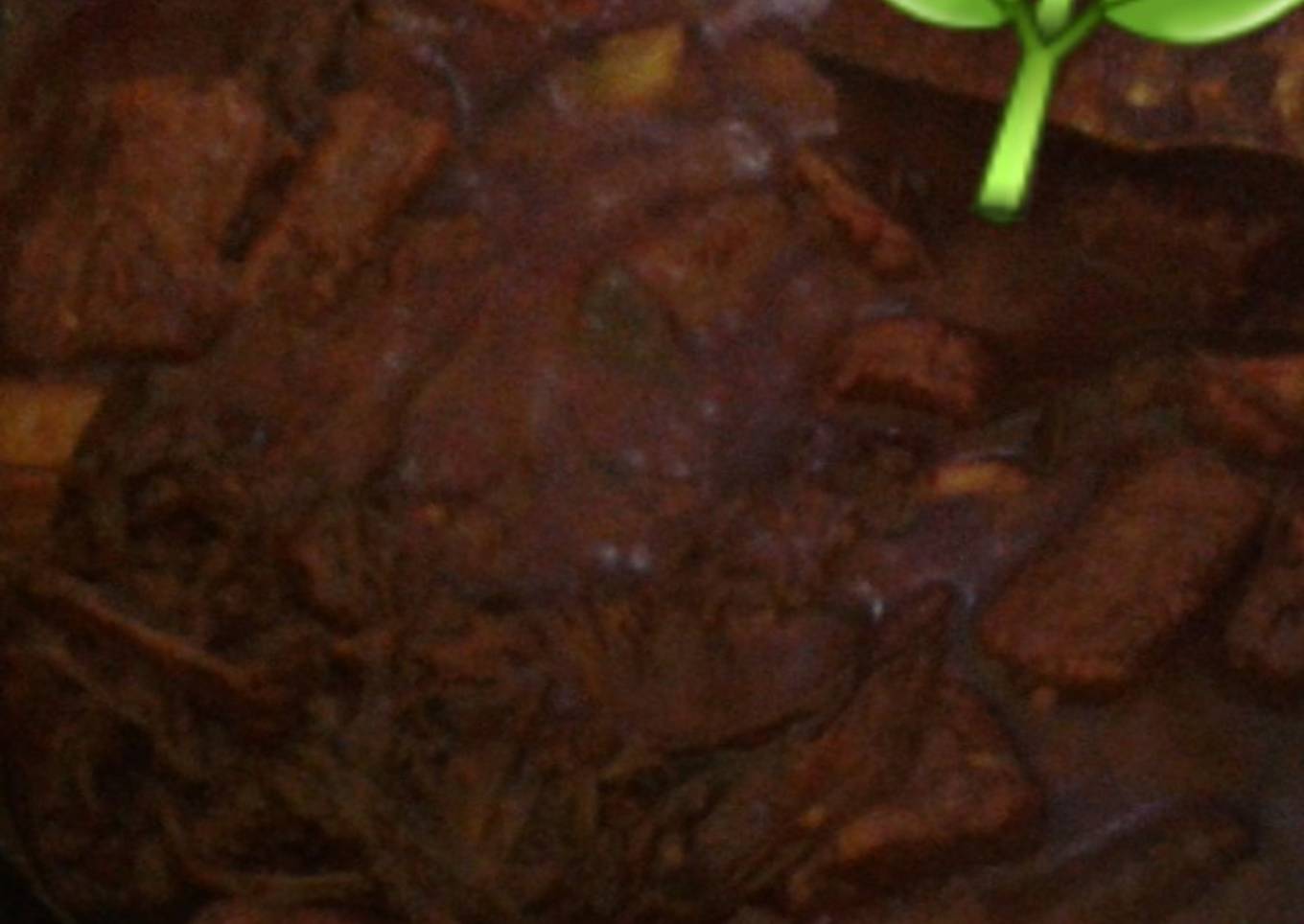 - Panaskan minyak, tumis bumbu halus beserta sereh lengkuas daunkunyit daunjeruk daunsalam sampai harum sampai bumbu agak kering dengan api kecil, lalu masukkan daging masak sebentar daging dengan bumbu halus. Lalu tambahkan air, masak sampai daging agak lunak.