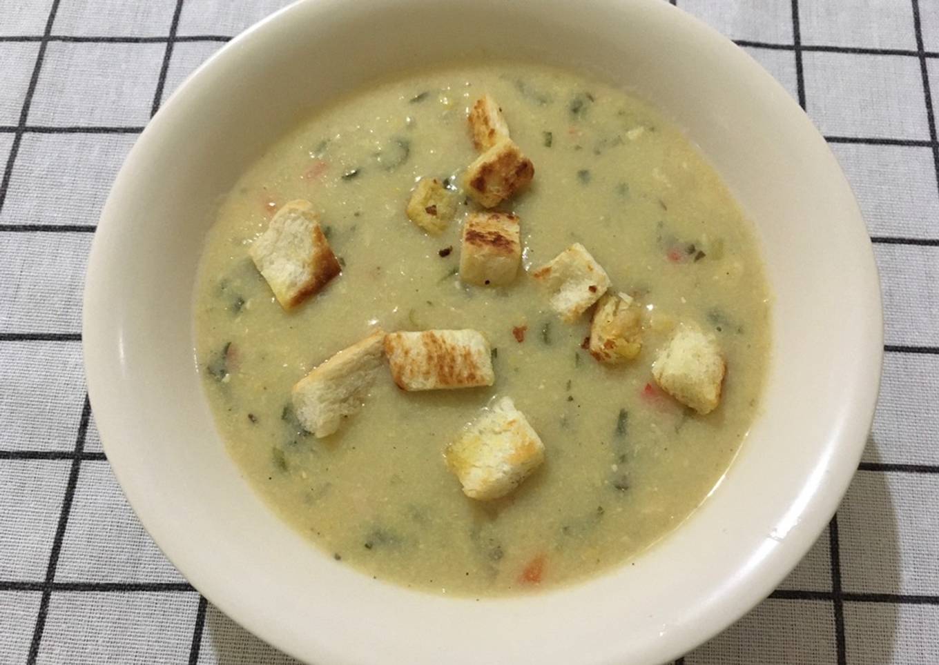 - Kemudian taruh corn chowder dalam wadah dan sajikan bersama croutons.