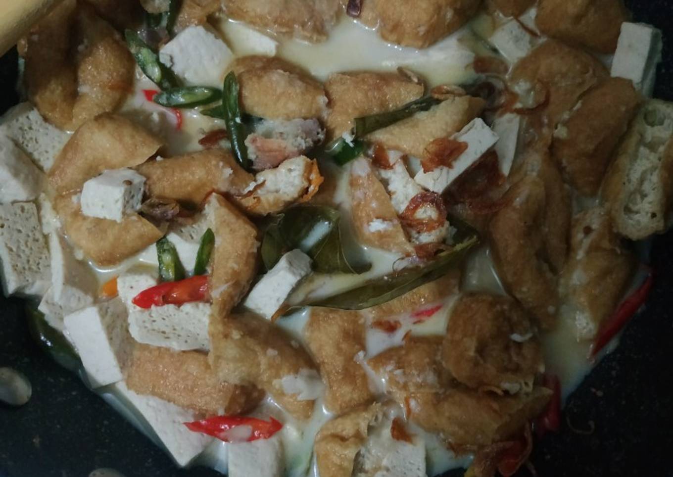 Sayur ini biasa disebut dengan sayur lombok/sayur ndeso. Tapi, di keluargaku disebut dengan sayur tahu karena selalu pakai tahu. Fiber creme bisa diganti dengan santan. Pada resep ini apabila warna ingin menjadi agak kuning dapat ditambahkan kunyit. Untuk lebih sedapnya juga dapat ditambahkan potongan daging.