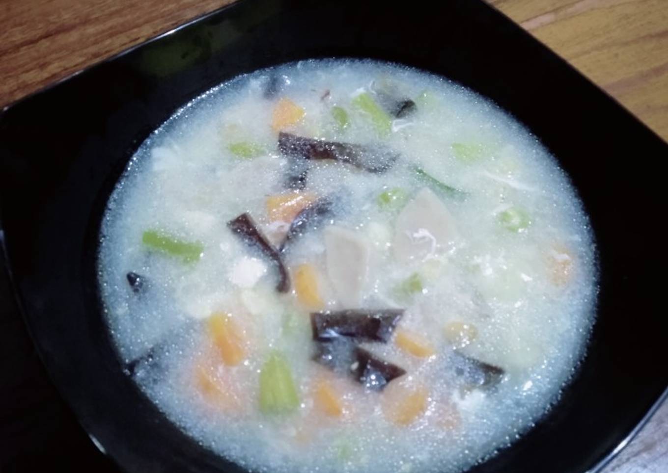 - Siapkan air secukupnya lalu didihkan setelah itu masukkan bumbu yg SDH di tumis aduk rata,masukkan sayuran kecuali jagung manis terakhir,masukkan jamur kuping,dan pentol daun prey,masukkan gula,garam kaldu bubuk,merica halus,pala bubuk,aduk rata