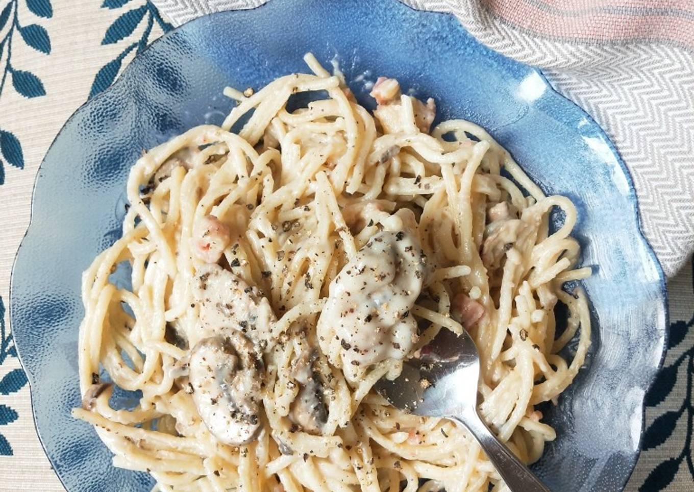 Resep Spaghetti with Mushroom Luncheon Cream Sauce Versi Ekonomis! Anti Gagal
