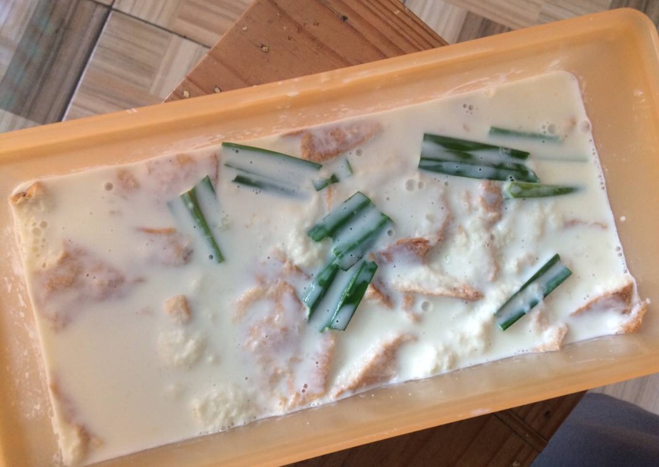 - Setelah mengental, angkat dan tuangkan ke dalam roti yang sudah di potong2. Setelah mulai dingin bisa di taruh dalam kulkas :)