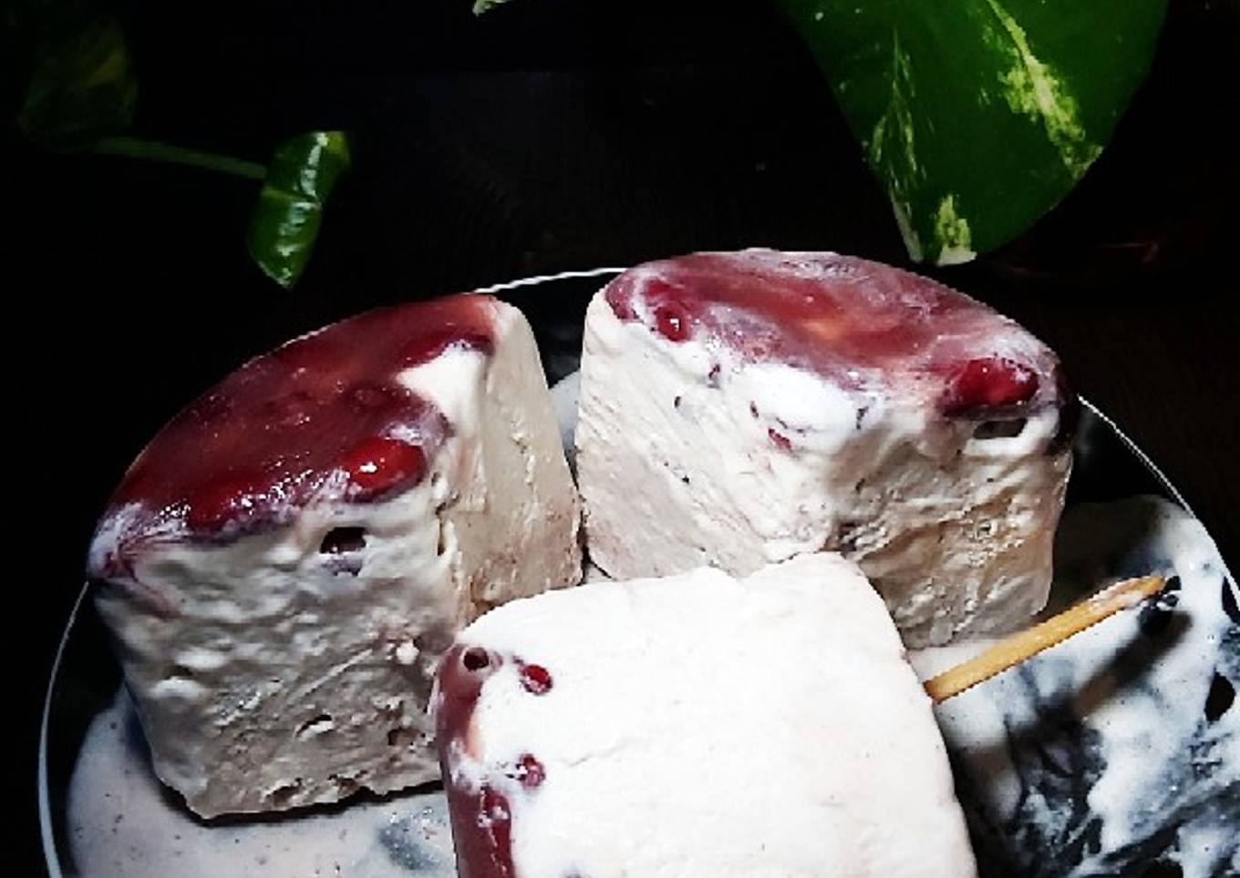 - Siapkan cup ice cream atau wadah menurut selera ambil secukupnya kacang merah tata kacang di dasar cup lalu tuangi adonan putih ice cream beri kacang merah lagi tuangi adonan putih lagi