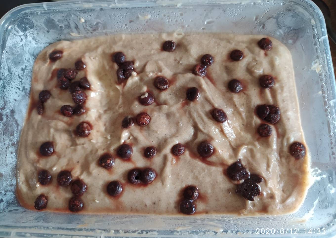 - Pindahkan ke dalam wadah. Hiasi dengan chocochips lalu masukkan kembali ke dalam freezer. Setelah sekitar 5 jam keluarkan eskrimnya. Siap dinikmati.