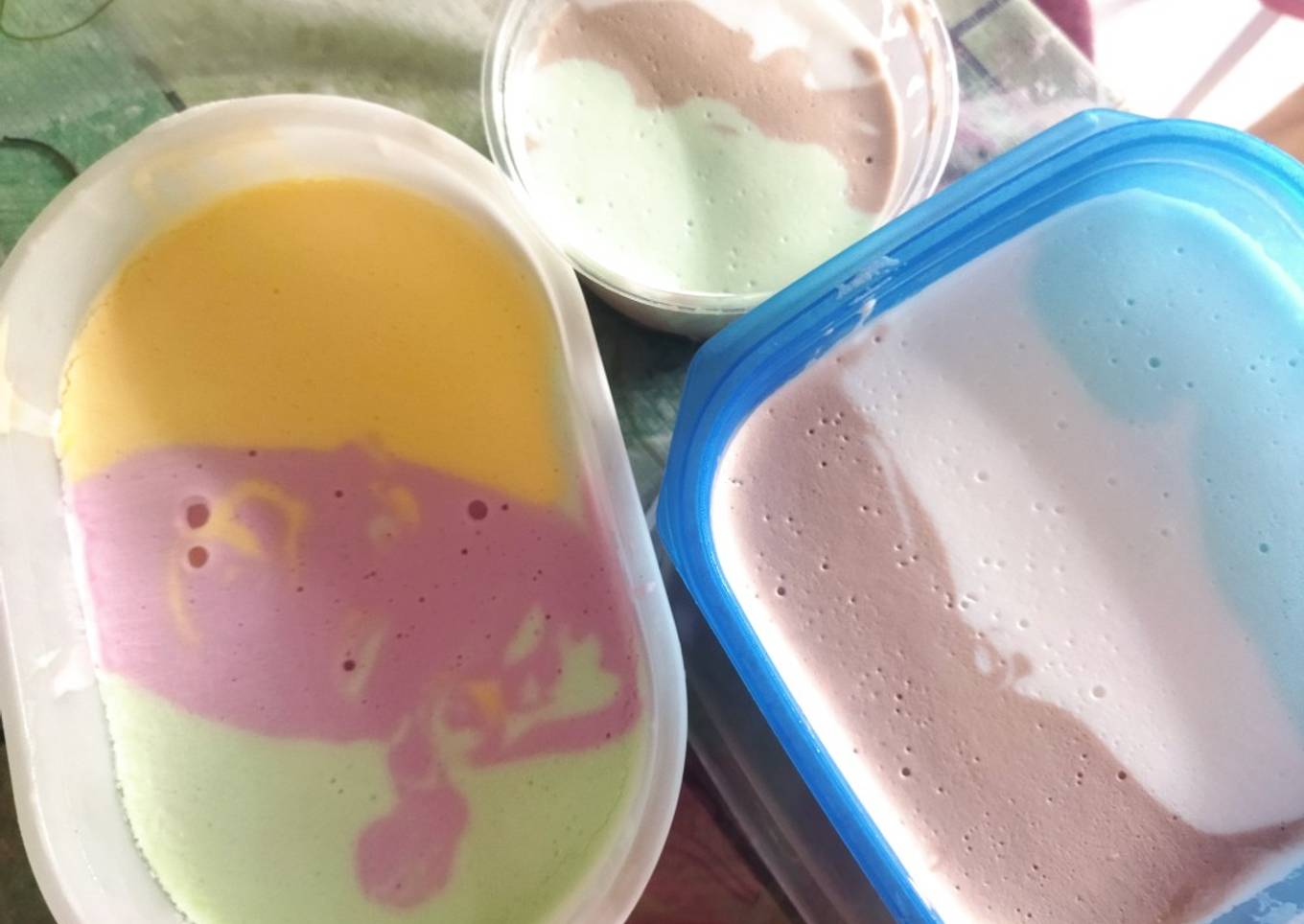 - Tuang dalam wadah wadah es krim sesuai selera. Kemudian bekukan kembali.. Dan es krim pun siap dinikmati.