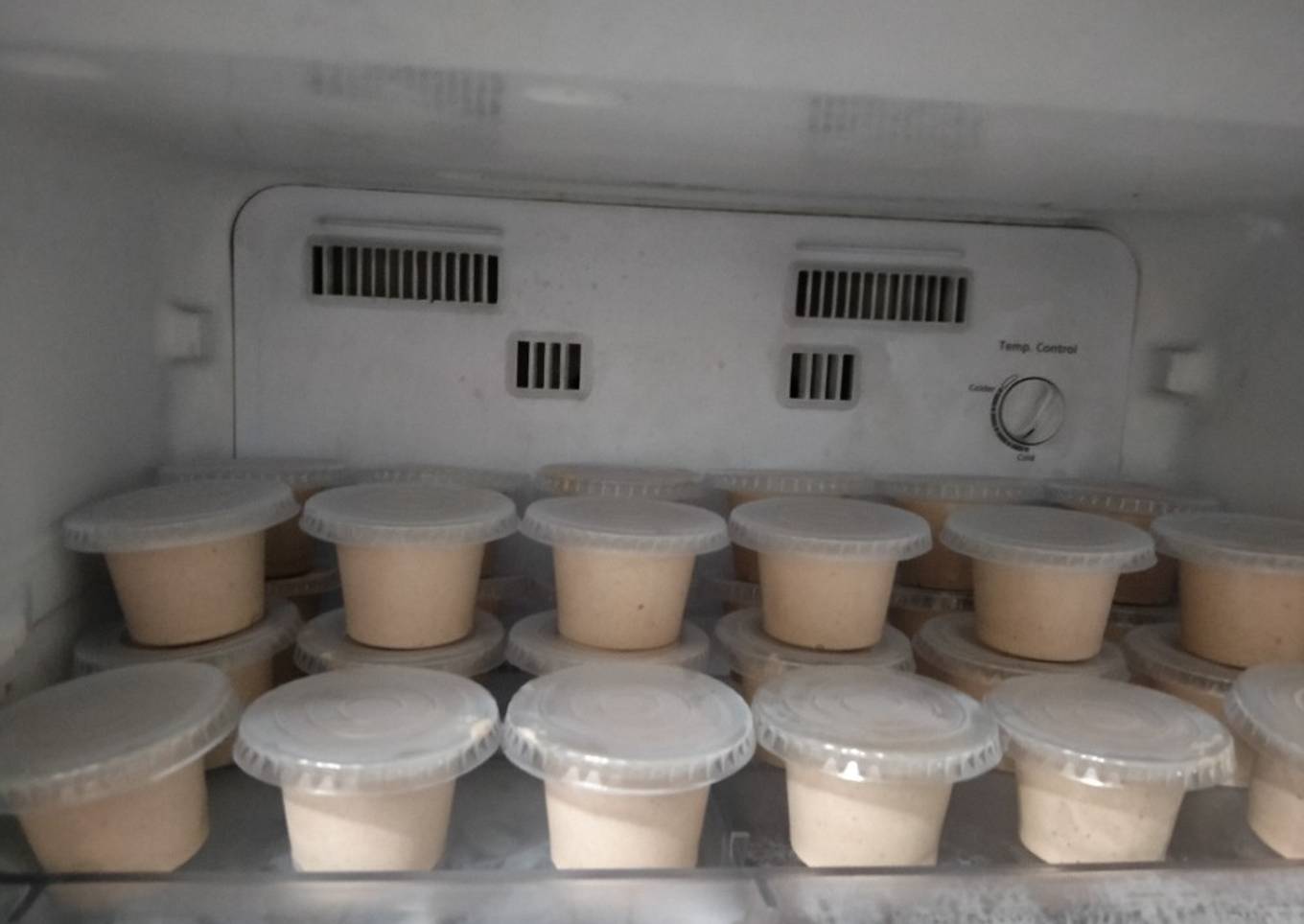 - Taro di wadah es atau agar2, simpan lagi di kulkas hingga beku