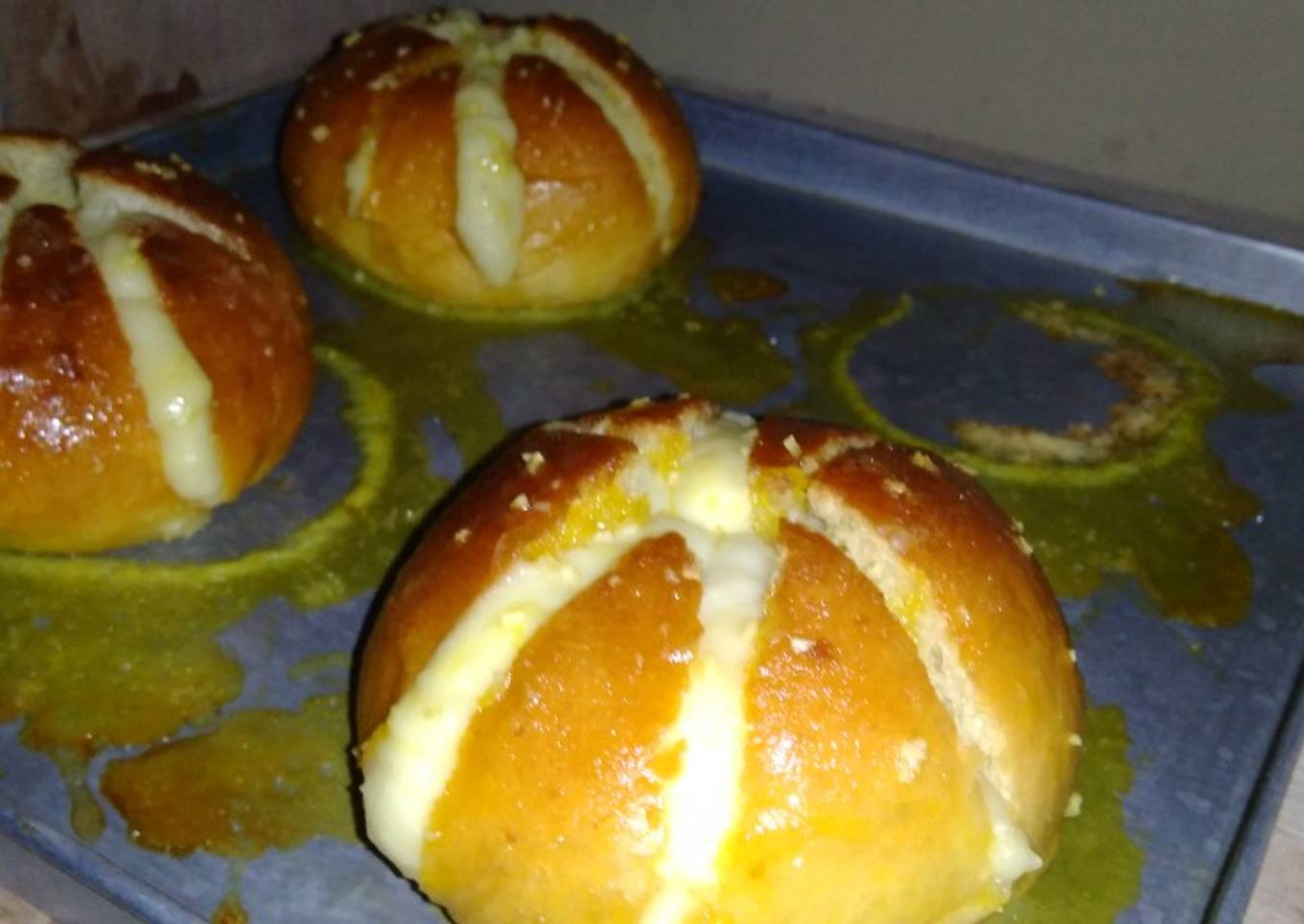 - Penyelesaian,belah roti menjadi 6 atau sesuai selera,spuitkan cream cheese ke tengah belahan roti,lalu siram dengan garlic glaze, panggang 10-15 menit