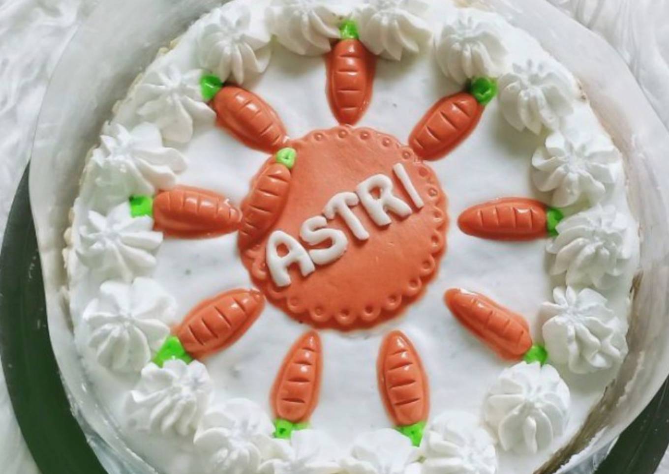 - Sebenarnya resep asli Tintin Rayner menggunakan creamcheese icing, hanya saja karena customerku maunya yang non dairy, jadi aku cover dengan whipped cream.