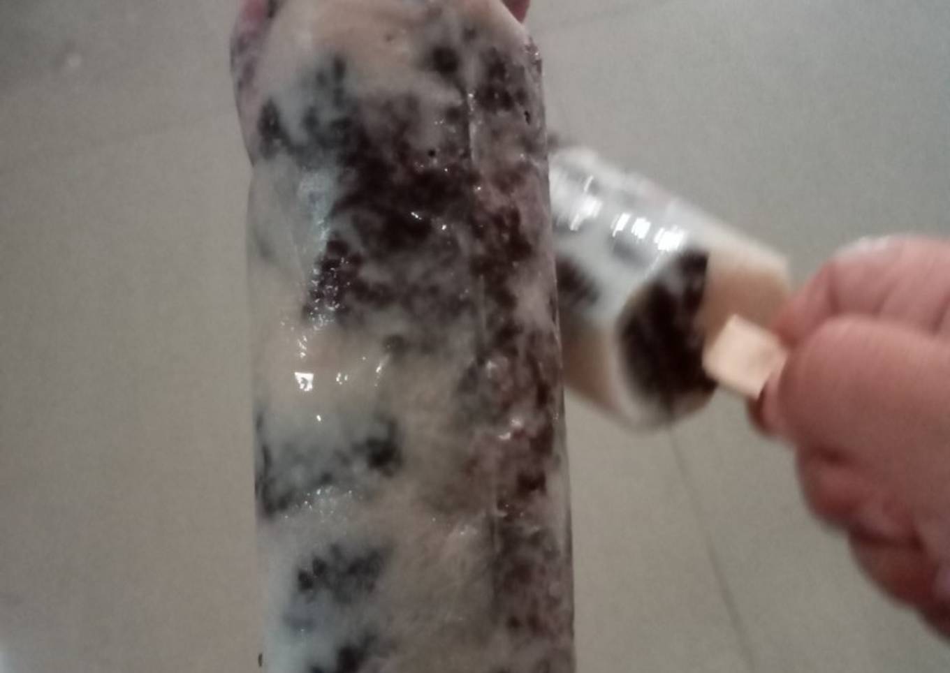 - Letakkan pada wadah, lalu tuang susu cair dan berikan stik di masing2 bungkus oreo.
