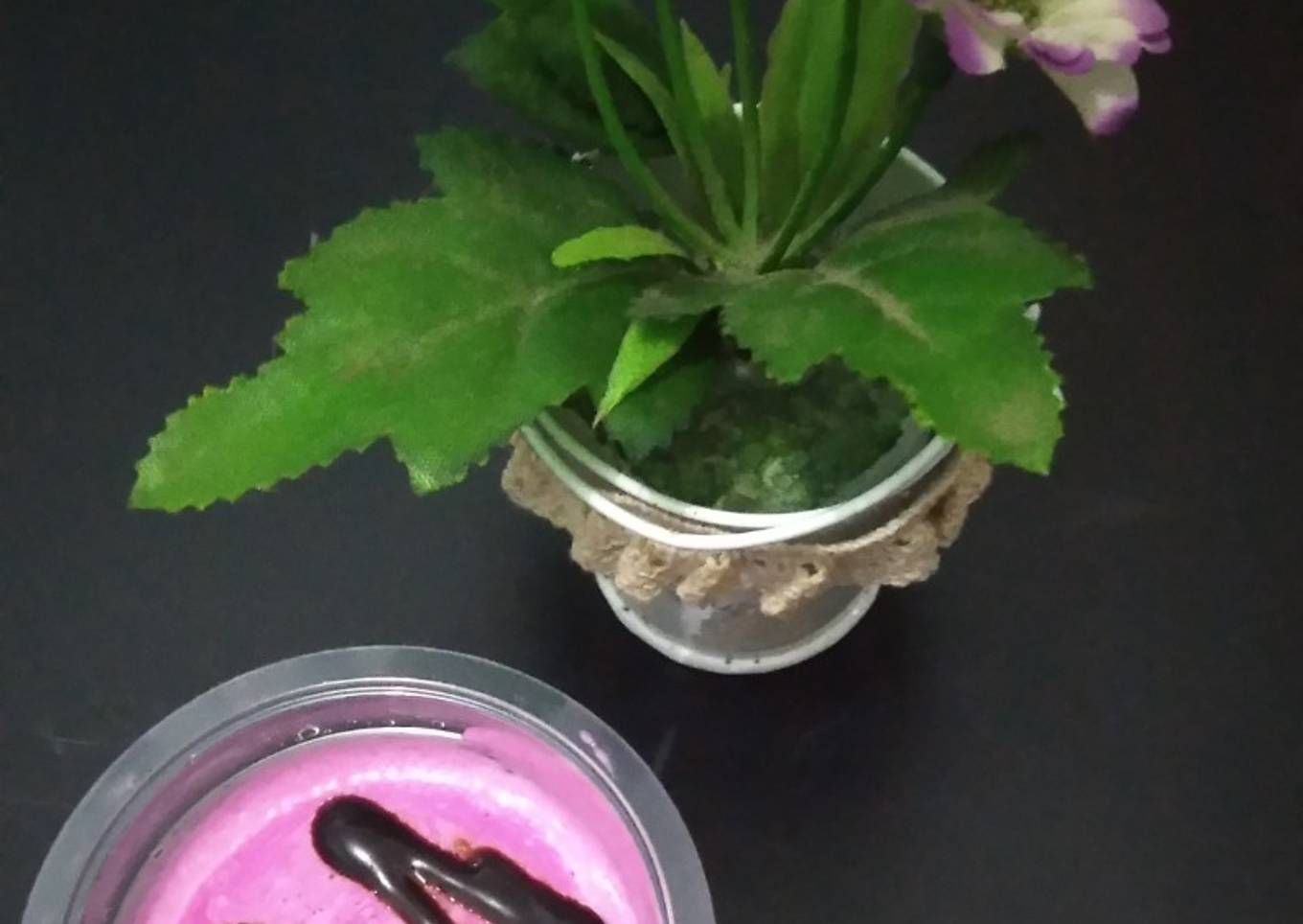 Cuaca di luar sangat panas dan kebetulan di kulkas ada buah naga, akhirnya dibikin es krim buah naga.rasanya yummy klo kata anakku dengan warna yang cantik pula😊.