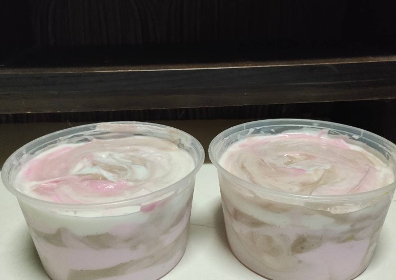 - Siapkan wadah, masukkan adonan es krim, kemudian dinginkan, setelah dingin masukan frezer 2-3 jam, tidak perlu sampai beku ya