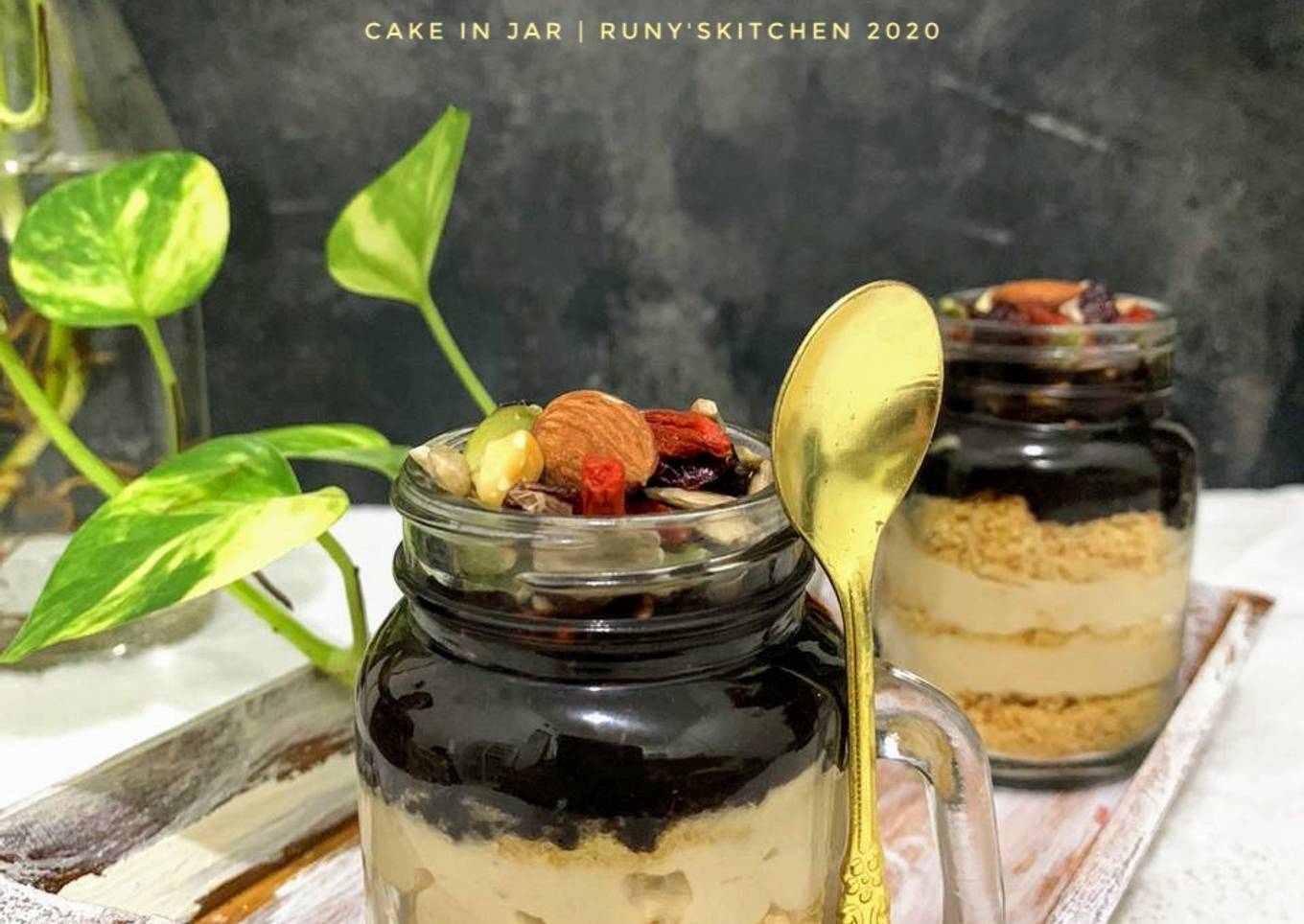 - Tata biskuit di dasar jar, beri krim, tabur lagi biskuit, lalu tutup dengan krim lagi, lalu biskuit lagi..dan terakhir tuang ganache diatasnya. Taburi dengan topping sesuai selera.