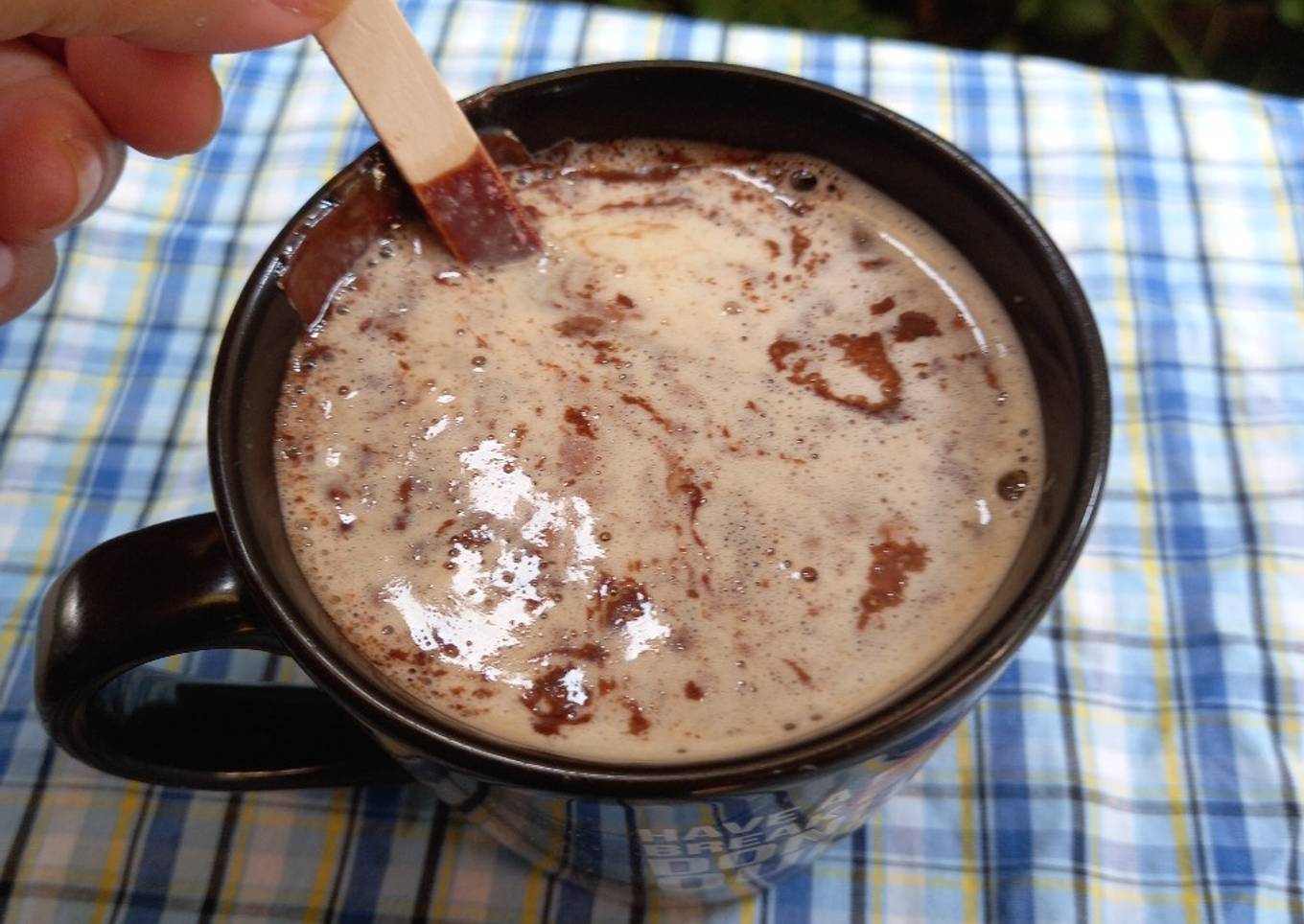 - Masukkan isi sacet kopi ke cangkir dan buka kemasan es krim.