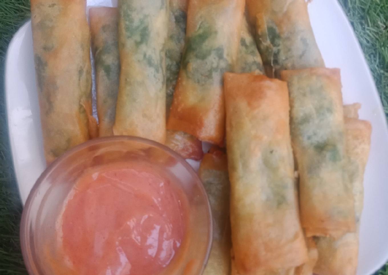 - Isi kulit lumpia tadi dengan adonan bayam.. Lipat rekatkan dengan telur kocok, lalu masukan ke dalam kulkas sebentar..