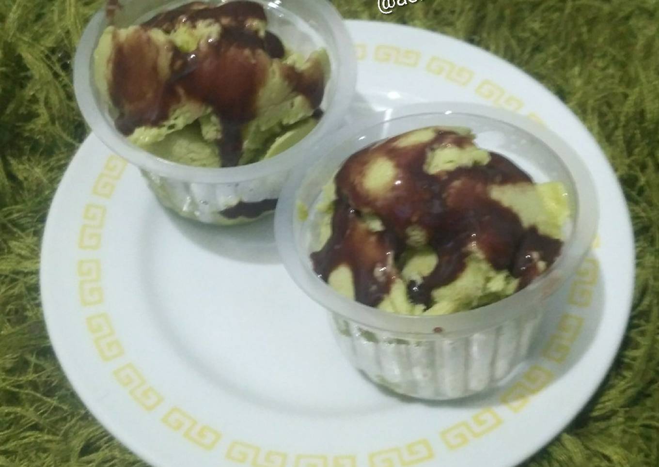 - Setelah es krim kaku maka siap disajikan dgn tambahkan skm coklat atau sesuai selera