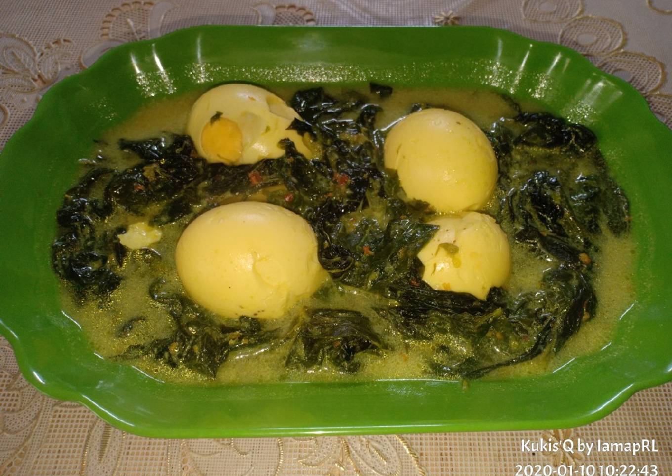- Tuang air dlm wajan berisi bumbu, masukkan daun singkong & telur biarkan sampai mendidih, masukkan 1 sendok sayur fiber creme aduk rata
