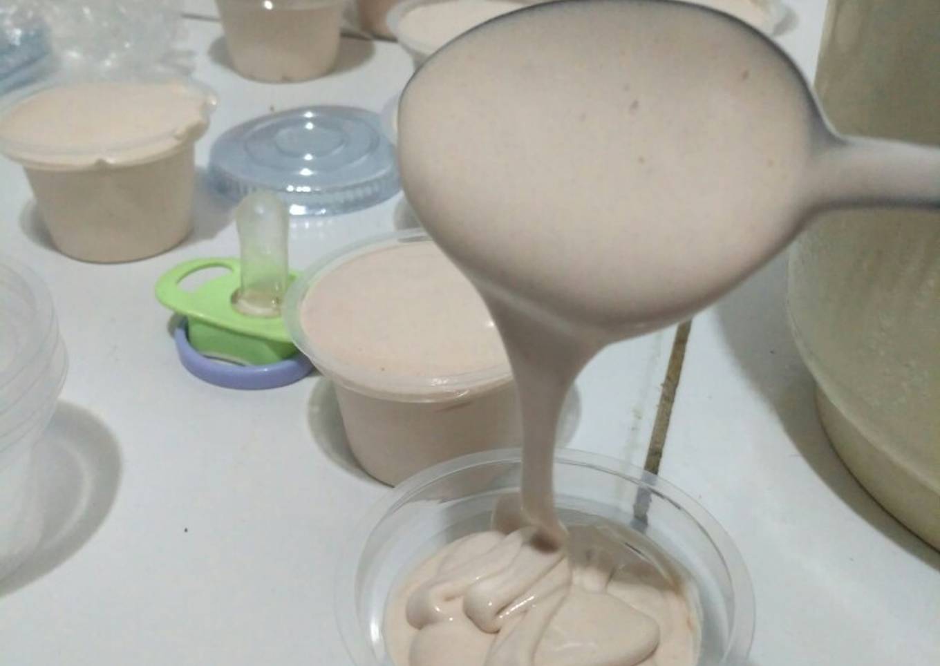 - Pindah adonan rebus ke wadah kedap udara, bekukan, aku buatnya malem2 dan paginya siap eksekusi