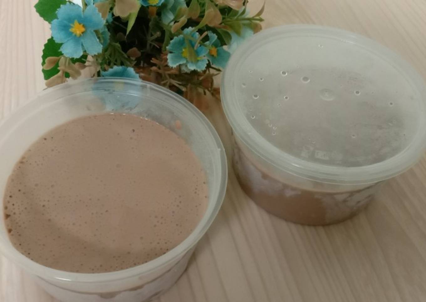 - Setelah mengembang tuang kedalam wadah dan masukkan freezer kembali hingga beku -/+ 8 jam
