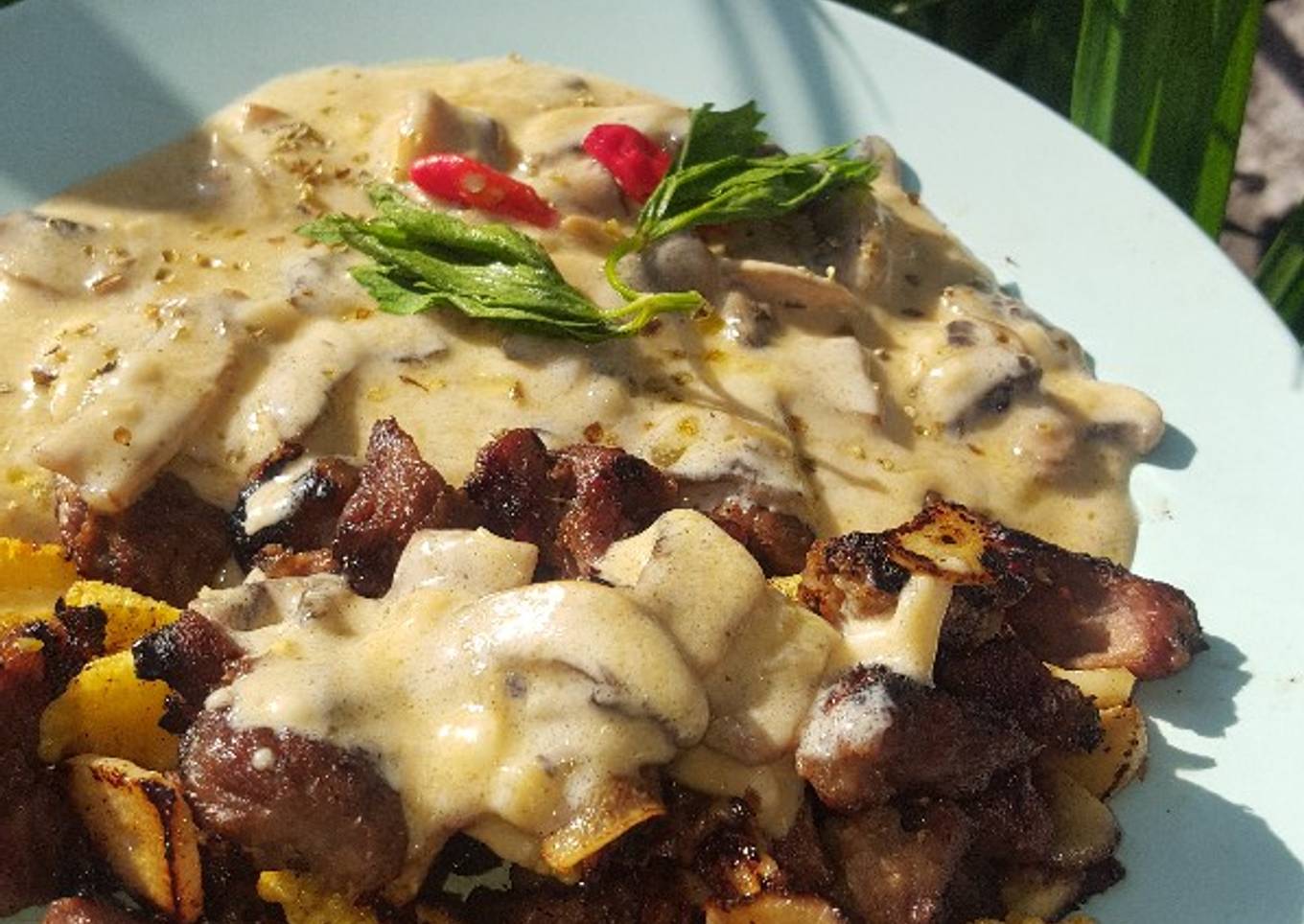 - Tuang saus di piring yg sudah berisi kambing panggang. Taburi oregano (bisa skip). Dan siap santap. NYummsss