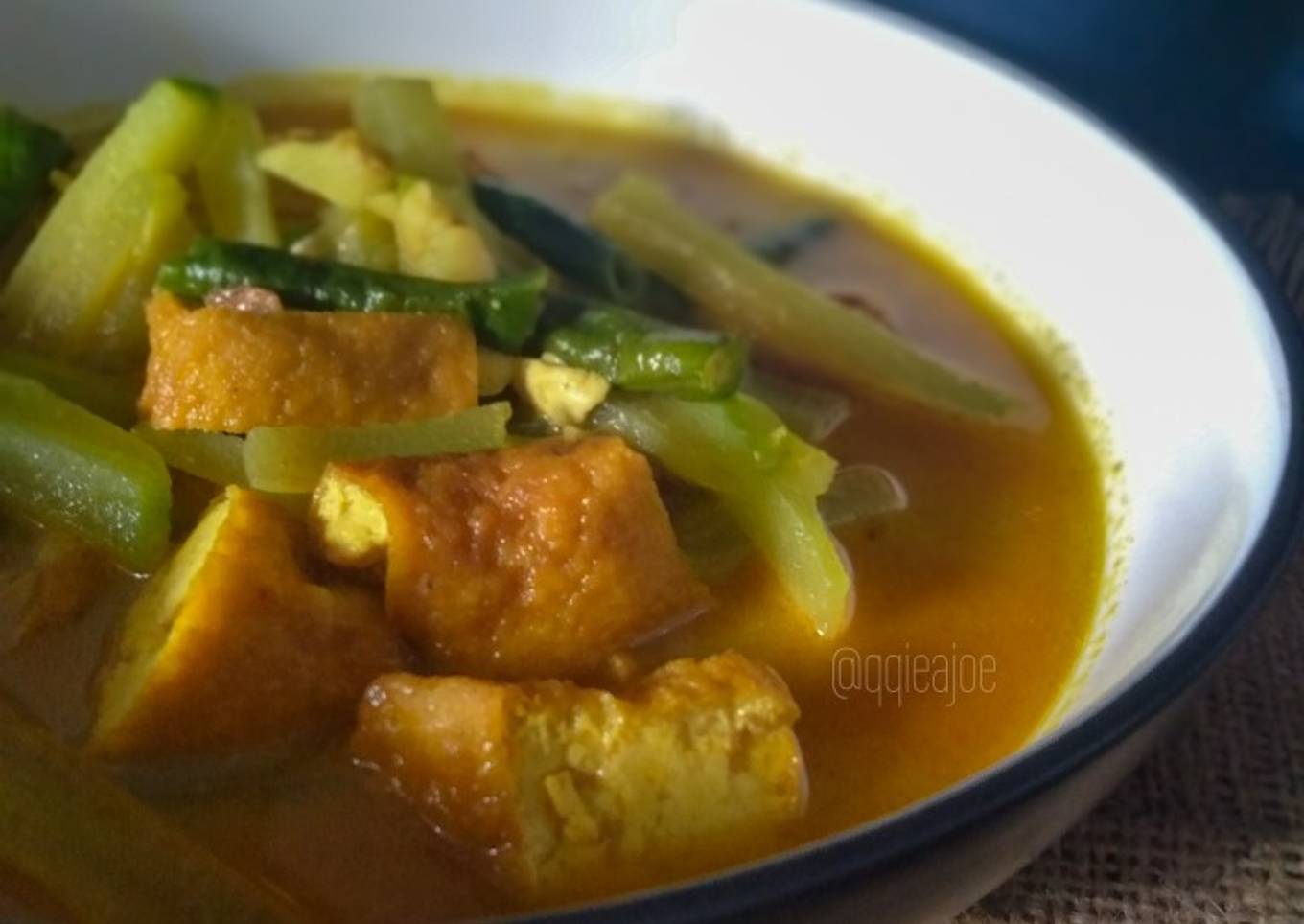 - Tumis bumbu halus Masukan daun salam Biarkan sampai harum Masukan sayuran Dan tahu lalu aduk rata