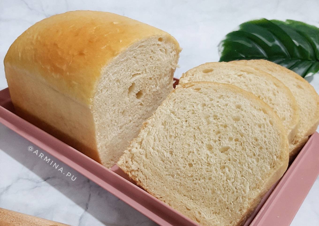 - Angkat roti, lalu langsung oleskan dengan butter. Diamkan sampai agak dingin, lepas roti dari loyang. Tekstur roti terlihat empuk banget.