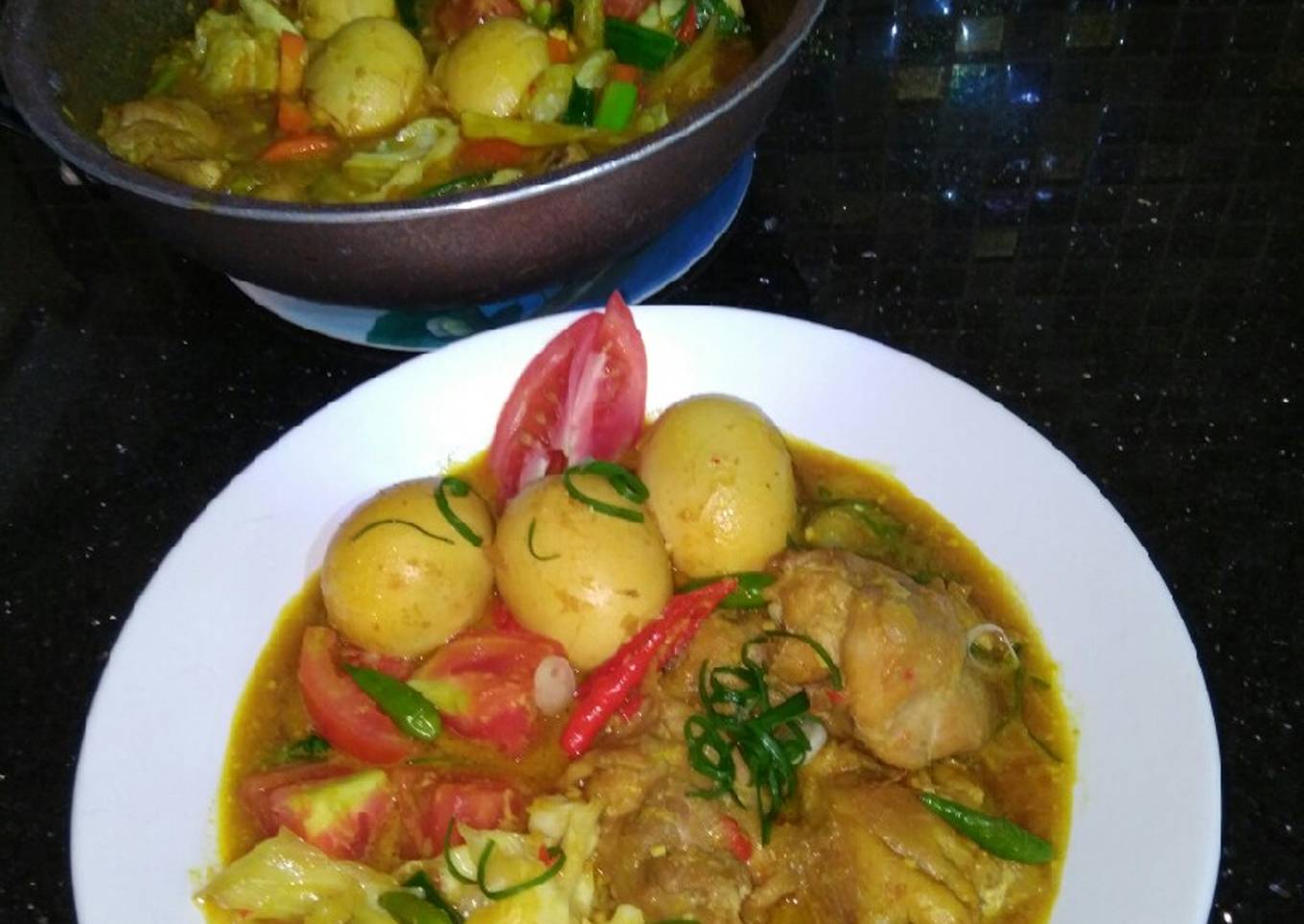 - Masukkan ayam,telur,cabe rawit iris dan kecap manis masak sampai mendidih lalu masukkan kol,wortel,cabe merah iris dan cabe rawit utuh (sy tambahkan air lg) aduk rata dan didihkan kembali