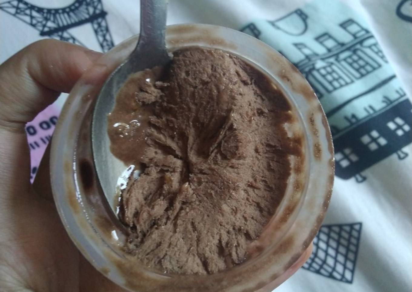 - Setelah beku keluarkan lalu hancurkan dengan sendok