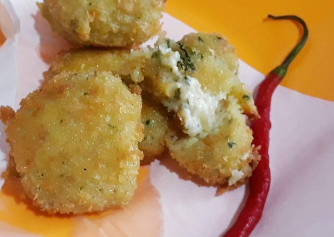 - Bulat2kan menjadi 10-12 bagian, balur dgn kuning telor. dan panir atau tepung roti. simpan di kulkas 20 menit (agar set).