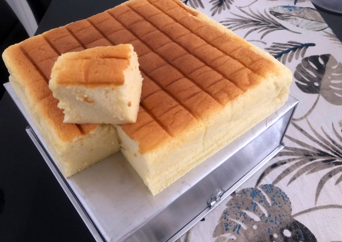 - Setelah adonan kuning telur sudah halus, masukan putih telur secara bertahap 3x aduk rata dengan spatula dengan teknik folding. Setelah tercampur rata, masukan kedalam loyang yang sudah dilapisi dengan kertas baking, buang udaranya dengan tusuk gigi dan hentakan pelan2. Lalu masukan kedalam loyang lagi yg lebih besar isi dengan air hanggat hingga 1/1.5 cm. Panggang selama 60-90 menit di suhu 150°c (tergantung oven masing)