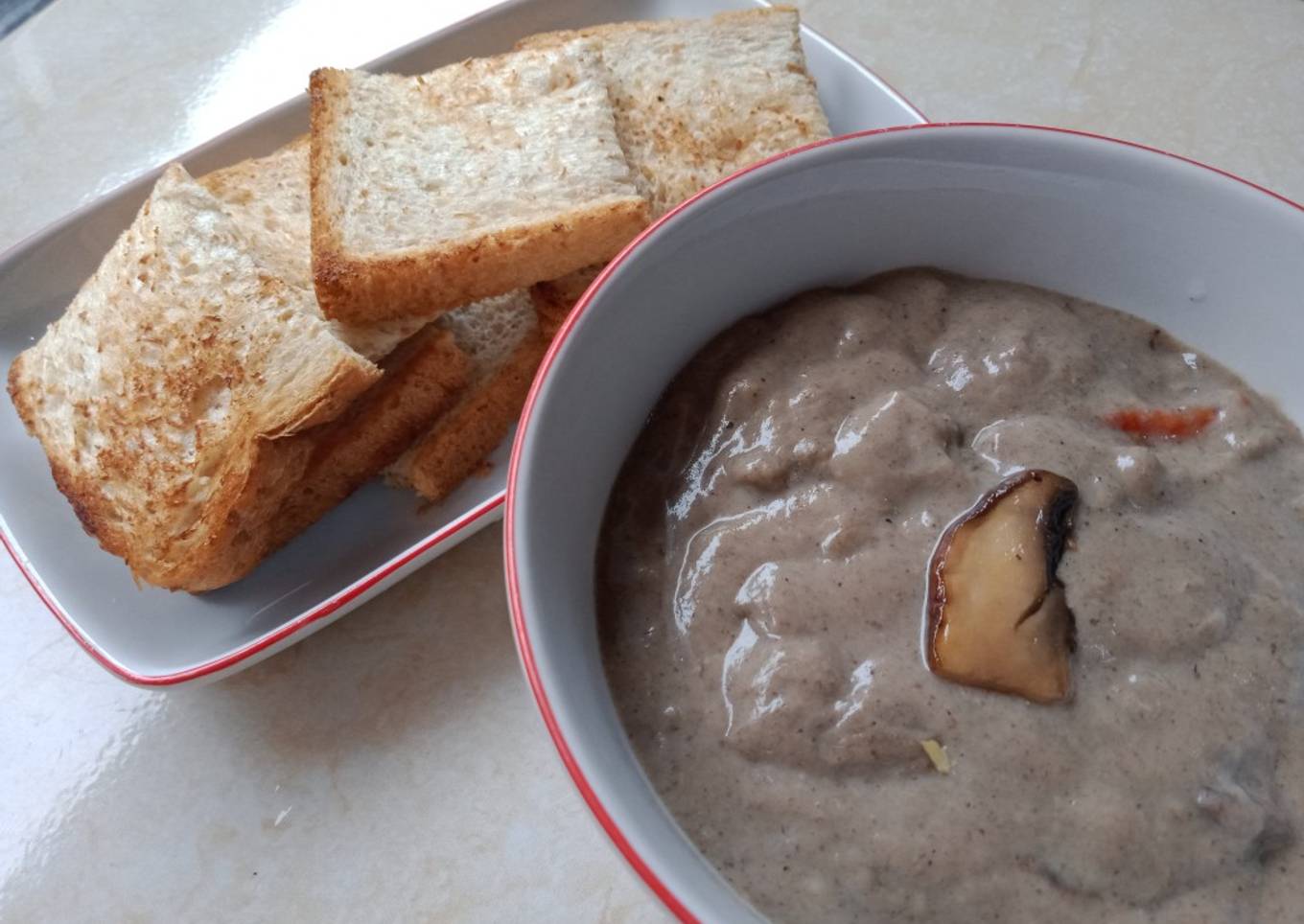 Pingin sarapan yang hangat karena cuaca Yogyakarta mendung, akhirnya inget cream soup lihat dikulkas ada jamur portabello ada fresh milk langsung dech eksekusi