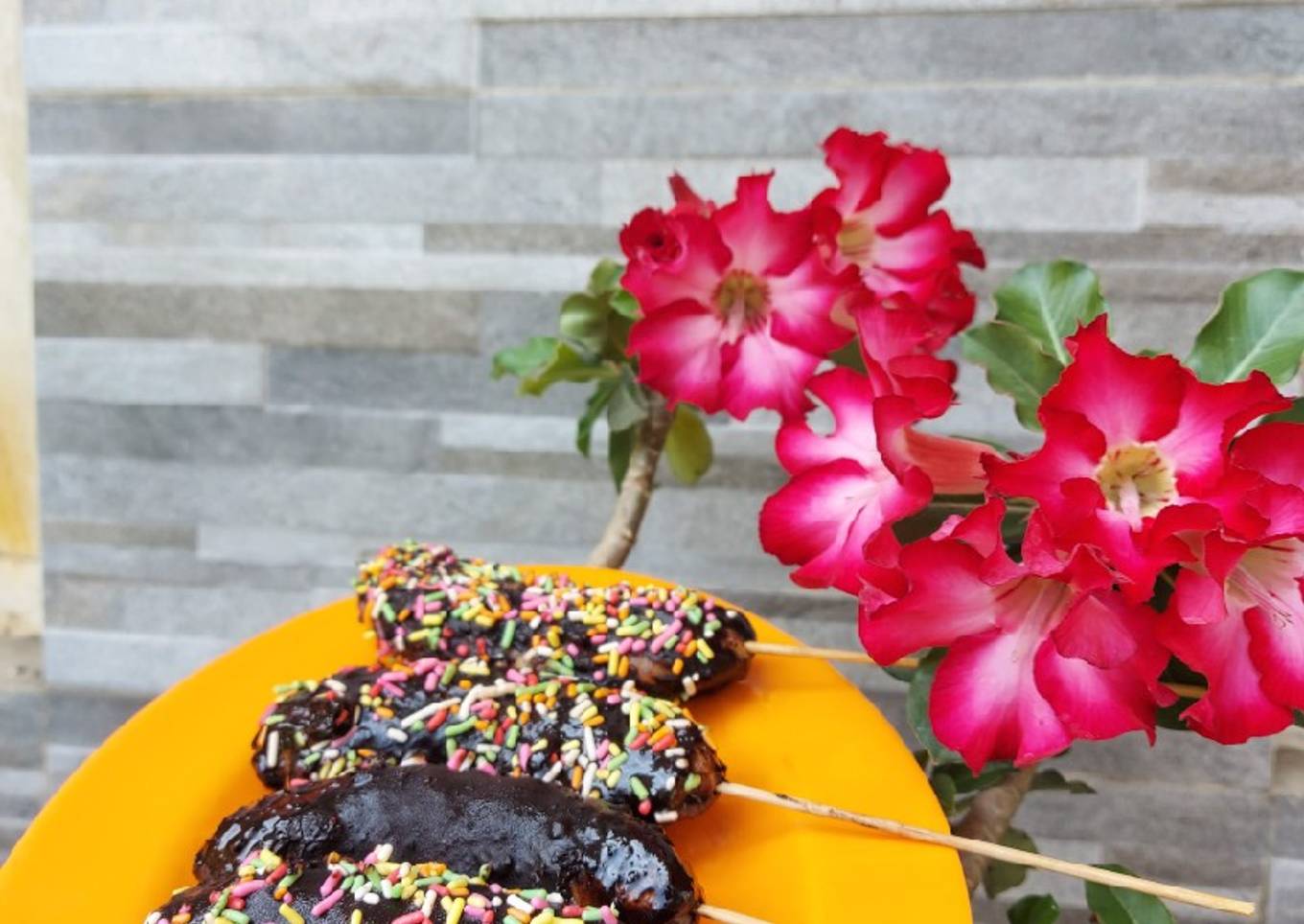 - Setelah coklat mencair. Celupkan/Oleskan coklat ke pisang hingga rata.(Masih dengan api yang menyala kecil) Lalu taburkan meses ke pisang coklat. setelah selesai bisa langsung dimakan atau masukan lagi ke dalam freezer lagi agar menjadi beku dan dingin.