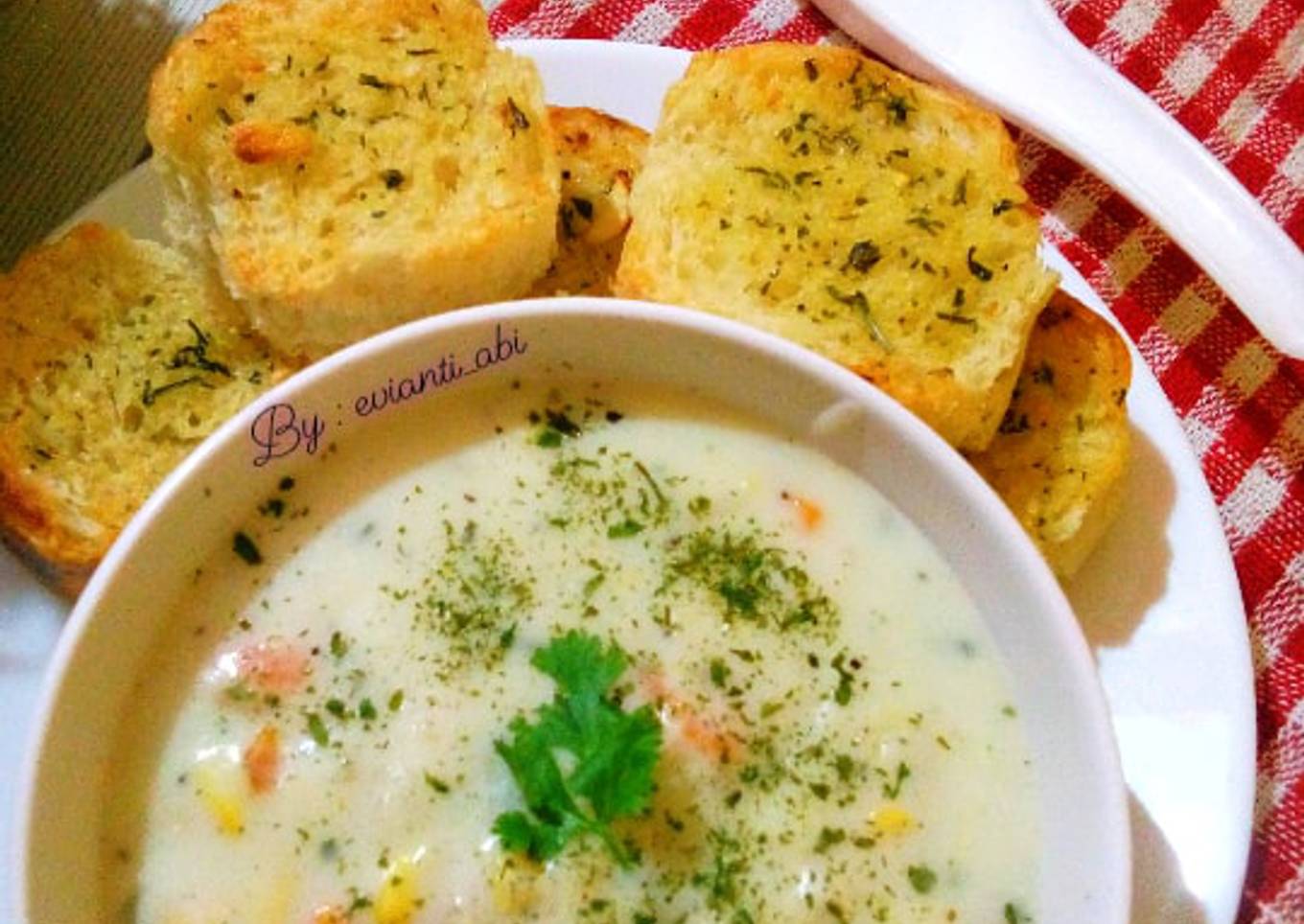 - Hidangkan cream soup bersama garlic bread..hmmm..yummy bgt 😋