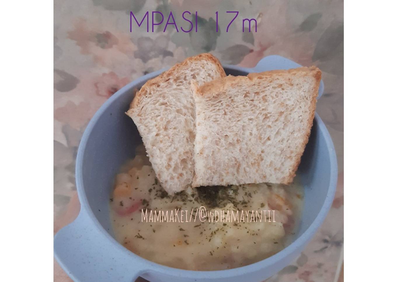 Oya, kekentalannya bisa diatur ya, kalo mau agak encer tinggal tambah lg aja susunya. Saya sengaja bikin lebih kental, biar gampang kalo K makan sendiri. Roti gandum jg boleh d skip, saya pake itu krn K doyannya sambil dicocol roti 🤤