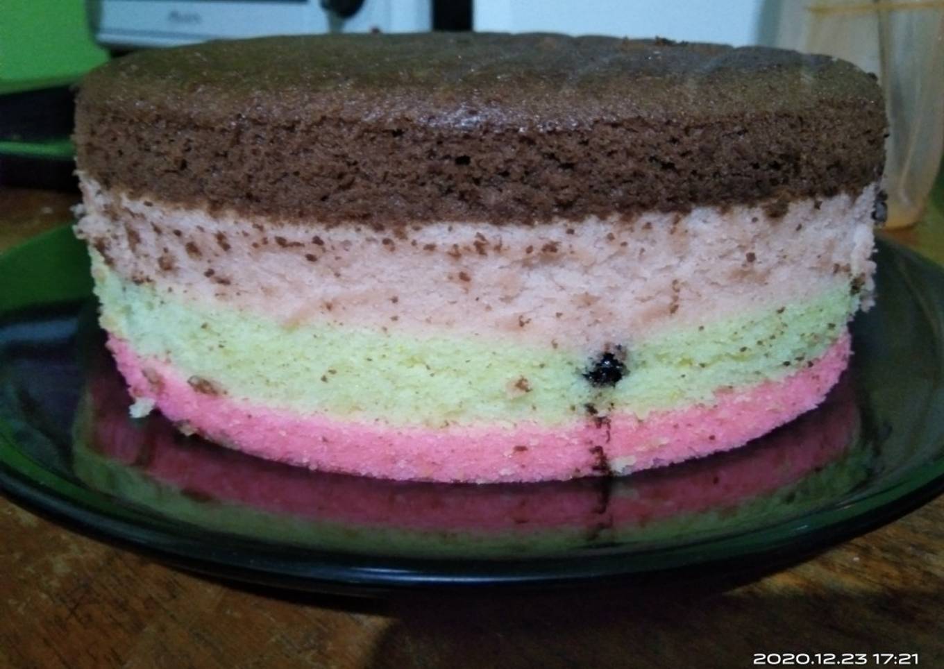 - Panaskan kukusan sampai beruap, tutup panci nya diberi lap agar air tidak menetes di adonan saat dikukus, lalu bertahap kukus warna yg rose terlebih dulu selama 10 menit, lalu masukan adonan berikutnya putih tabur Meises atau coklat blok kecil², ungu, dan coklat terakhir. Tiap lapis kukus selama 10 menit. Setelah adonan terakhir masuk, kukus selama 30 menit agar matang sempurna.Kukis dgn api sedang. Dibawah ini photo setelah matang. C dd yg motongin jadinya demikian, yg penting dia bahagia, hehe
