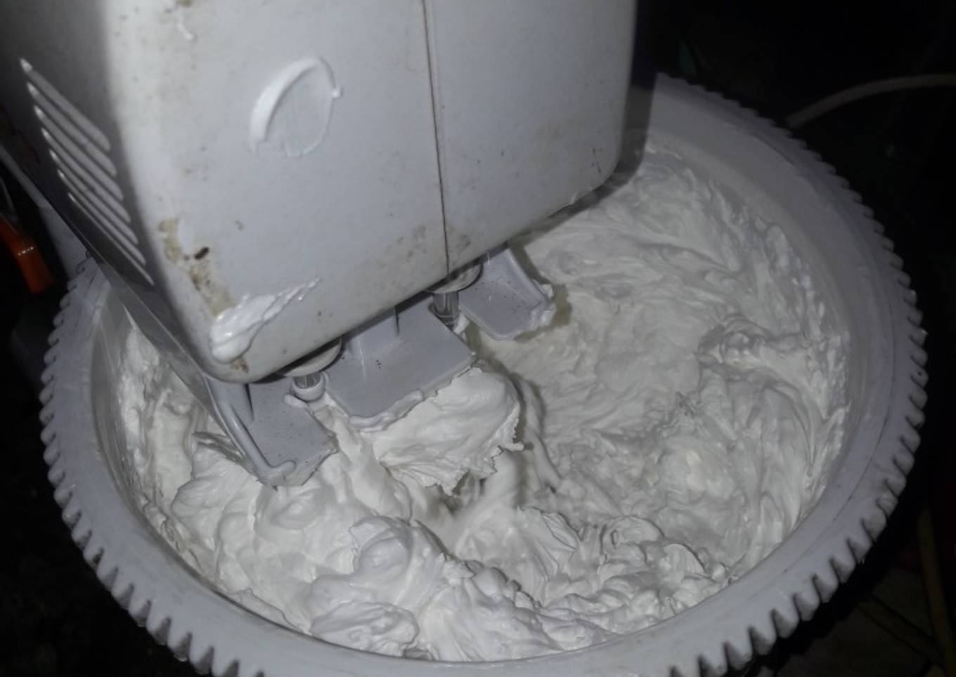 - Mixer mentega putih selama 20 menit (sampai mengembang dan putih mengkilap) dg kecepatan tinggi