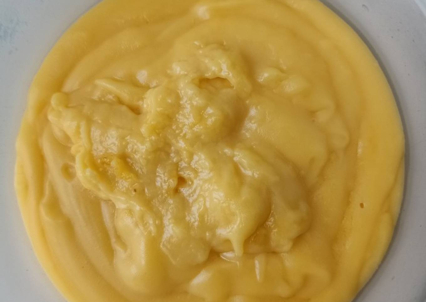 - Masukkan 100 ml susu cair kedalam gelas, campur dgn custard powder dan vanilla.