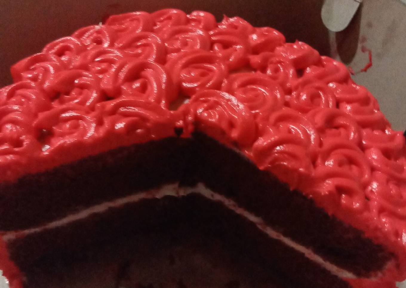 Hari ini anniversary ke 3 saya dan suami, kebetulan di ig ci tintin rayner ada resep redvelvet cake ini. Ini pertama kalinya saya buat RV ini dan sukses sekali. Maaf fotonya gak bagus karena diambilnya pas malam2 😁 tapi dijamin ini super moist, super enak, dan ekonomis