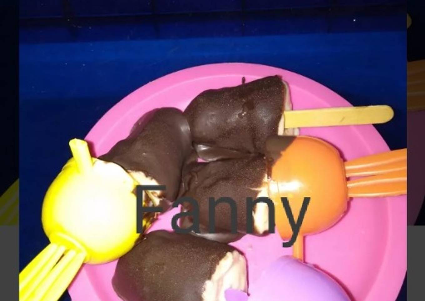 - Lelehkan coklat. es yg mengeras. celupkan dlm coklat.