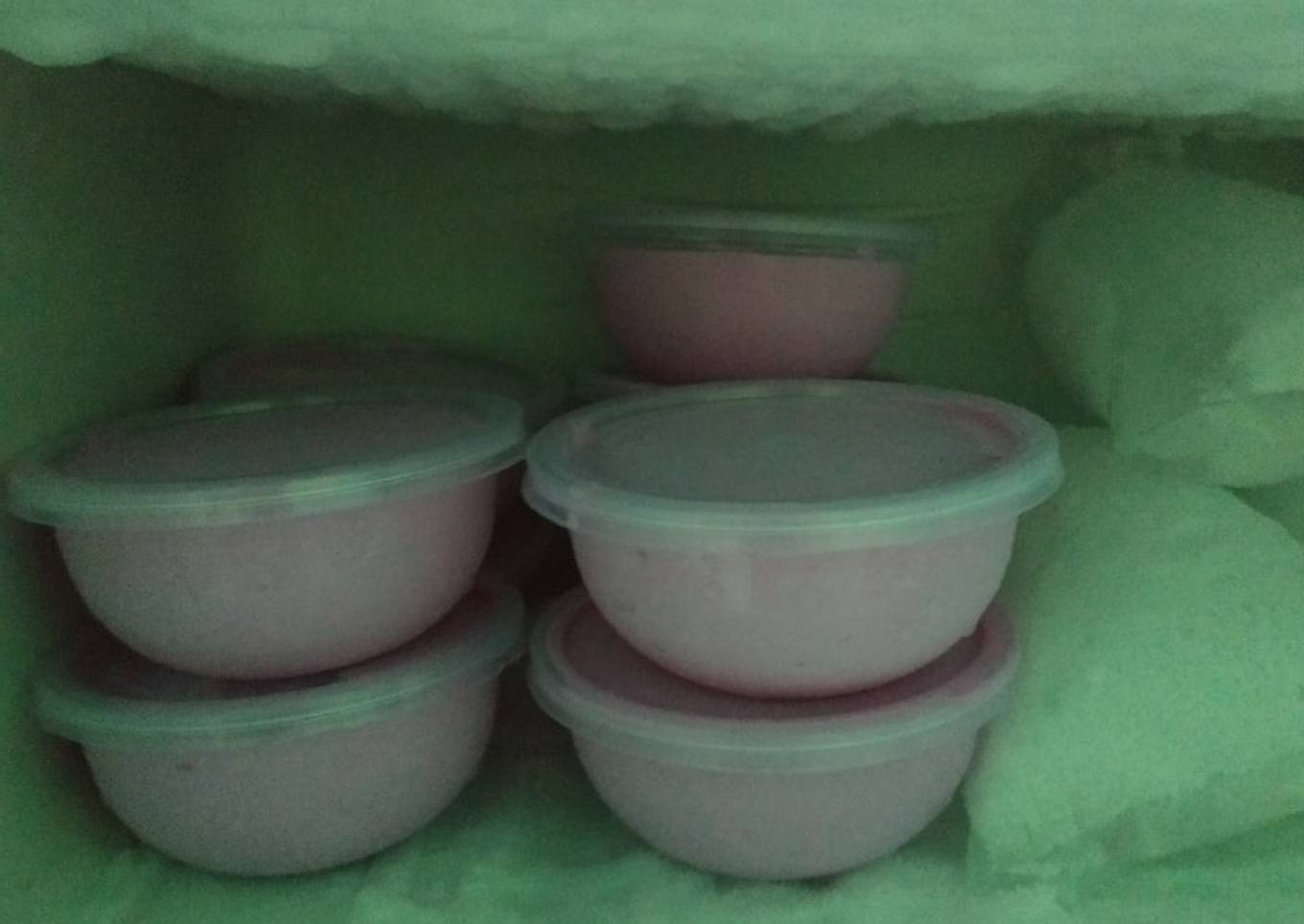 - Tanda adonan mengembang yaitu warna berubah pucat dan volume bertambah. Tuang dalam mangkuk kecil2. Masukan kembali kedalam freezer selama ± 24 jam. Es krim siap untuk dinikmati