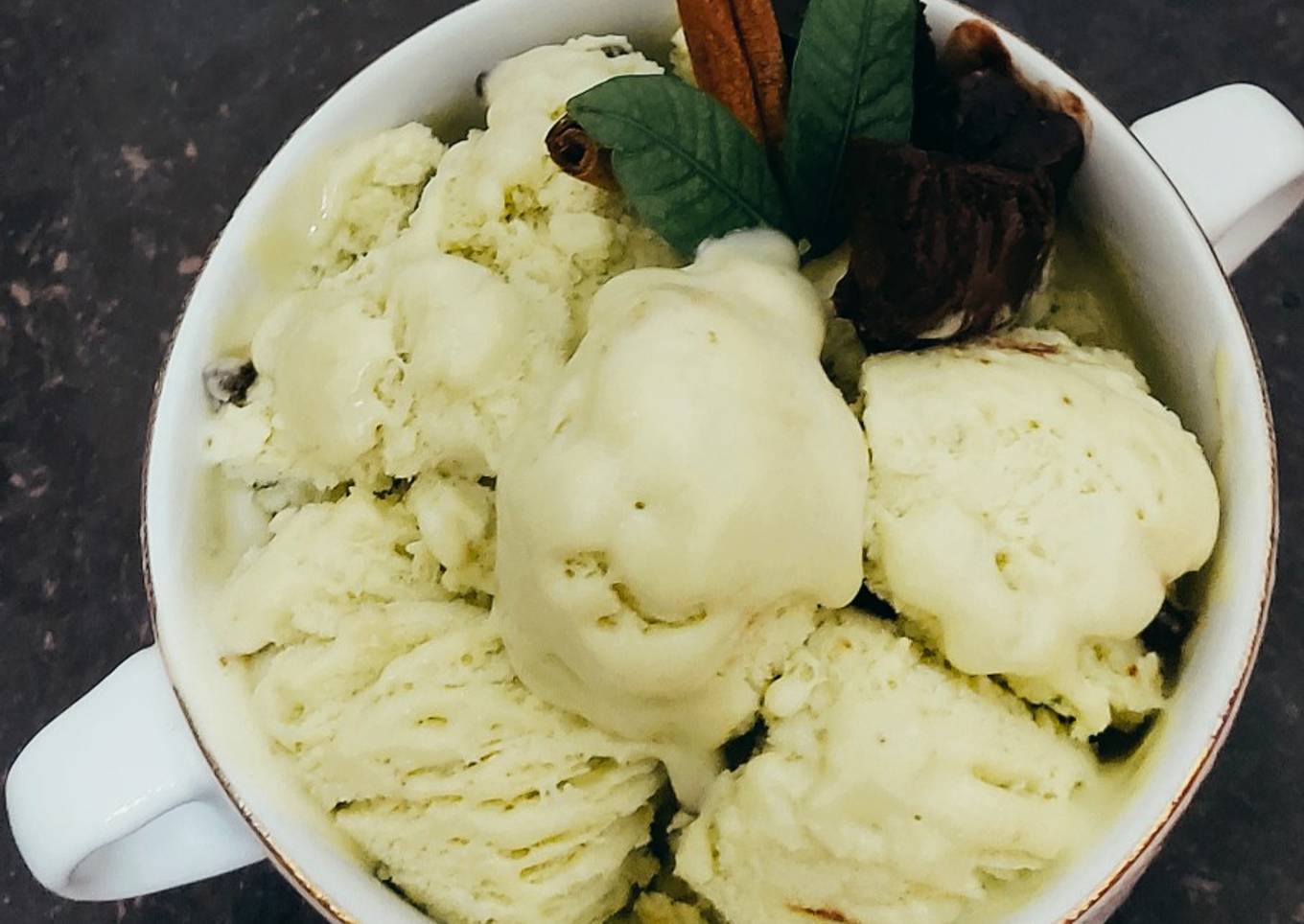 - Sajikan dalam wadah saji, tambahkan coklat batangan sebagai toppingnya. Alvocado ice cream siap untuk dinikmati.