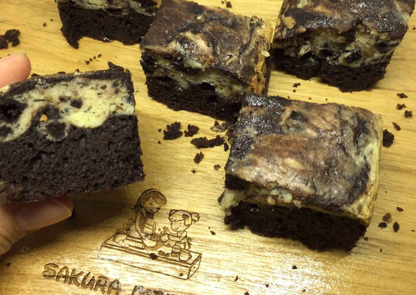 - Adonan Brownies : Kocok telur dan gula, tambahkan lelehan butter + dcc. Setelah tercampur, masukan campuran terigu dan cocoa powder ke adonan lalu kocok dengan menggunakan whisk. sisihkan