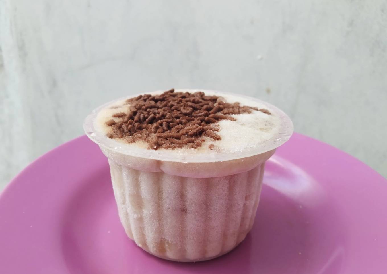 - Masukkan ke dalam cup kecil. Beri topping meses coklat. Kembali bekukan ke freezer. Es krim pisang sudah jadi