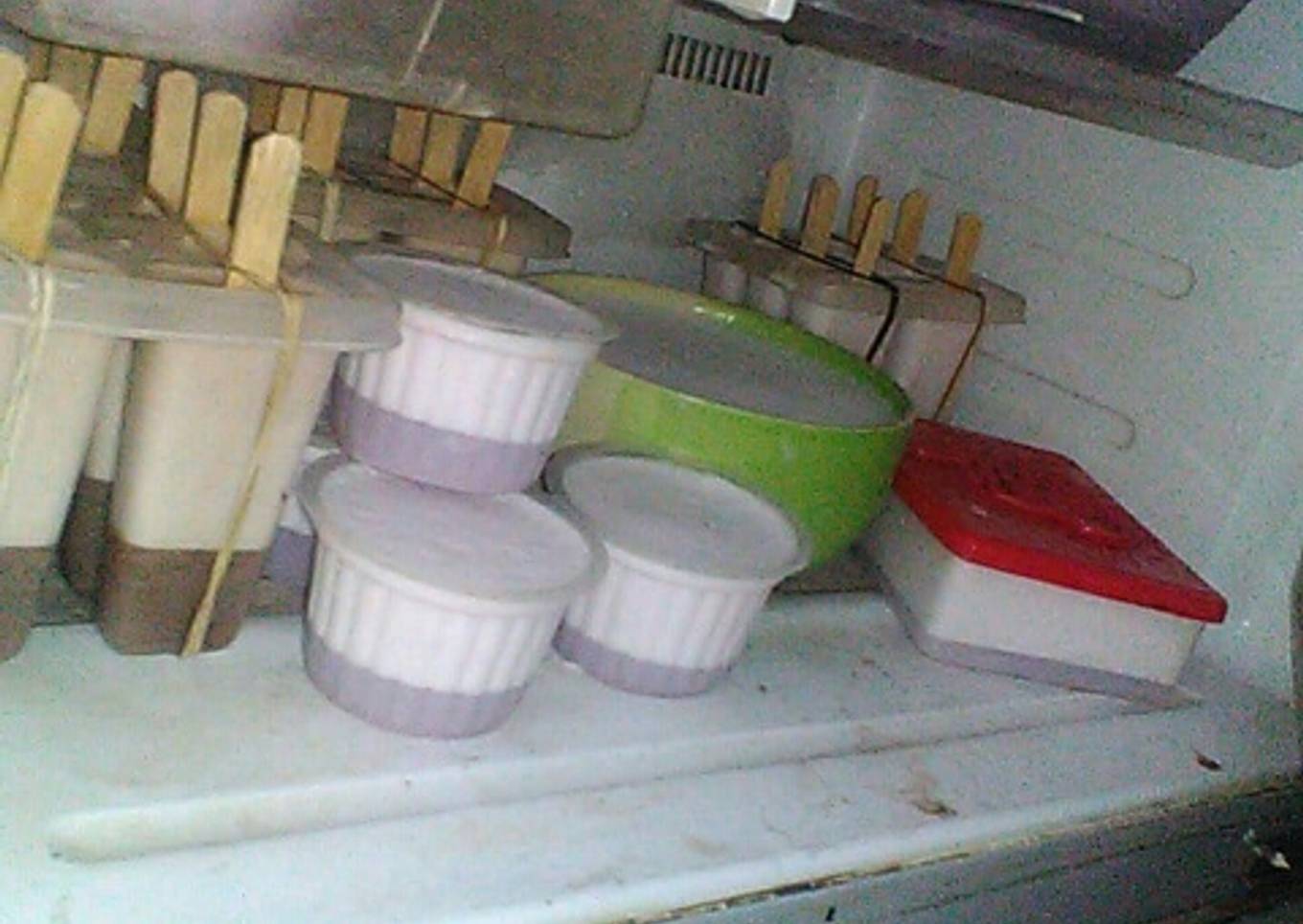 - Setelah itu kita masukan ke dalam frizer dengan keadaan setengah beku lalu kita masukkan tusuk es krim nya,dan kita tunggu semalaman lagi