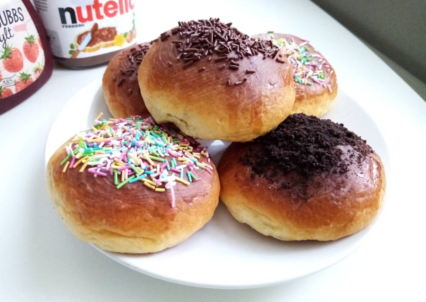 Selain pakai tepung terigu, saya modifikasi di resep isiannya pakai cream cheese dan toppingnya pakai meises dan bubuk oreo karena lagi ga punya keju parut plus sekalian ngabisin stok deh pokoknya. Ada kesenangan tersendiri kalau bisa menghabiskan bahan makanan yang ada 🤗