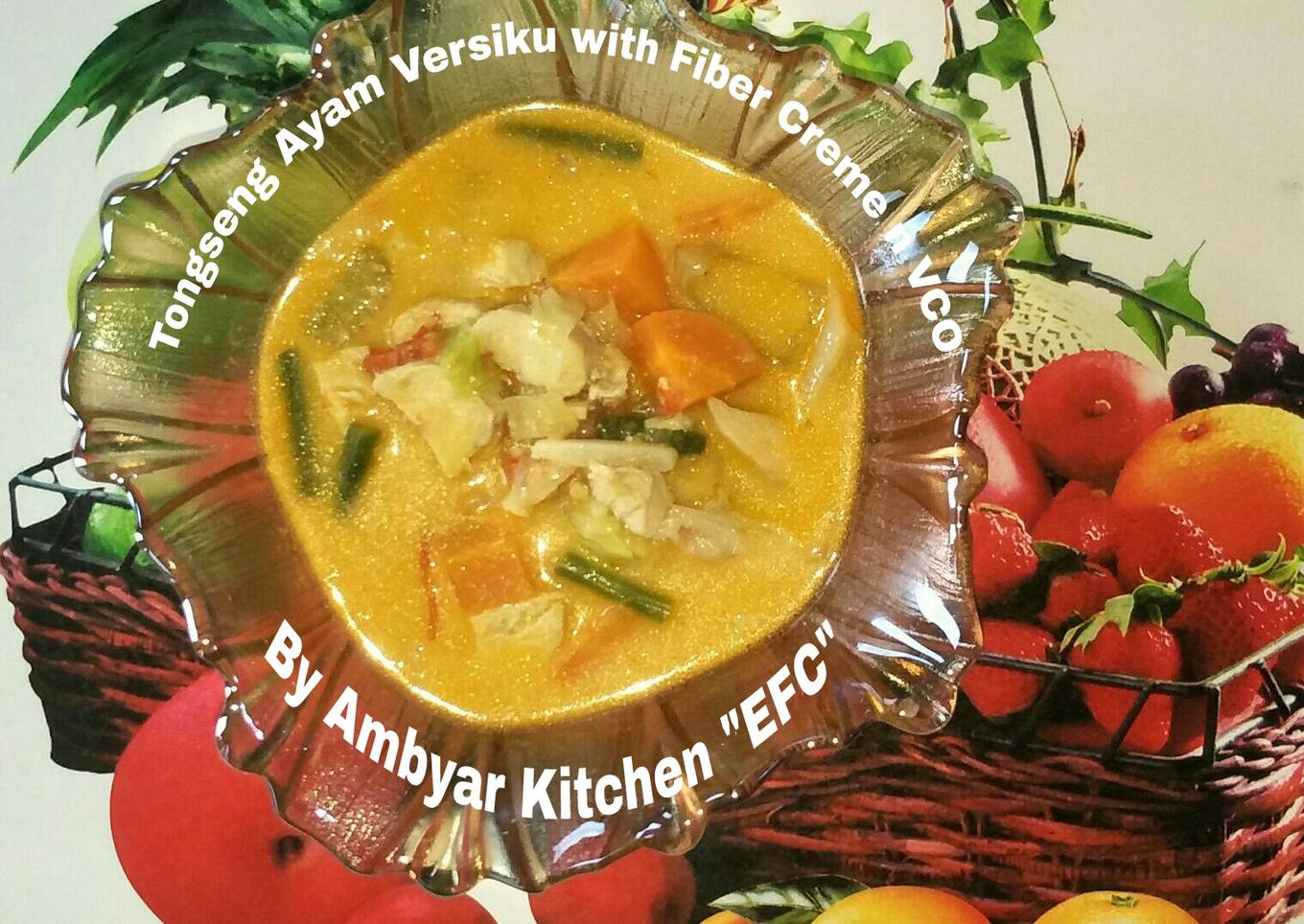 - Panaskan minyak, tumis irisan bawang smp harum, masukan bumbu halus n daun jeruk, tumis smp bnar2 matang + lada, masukan tomat tumis sbentar + wortel n buncis tumis sbentar + air smp smua bhan trendam, tutup, sesekali aduk. Stlh sayur 1/2 matang + ayam aduk rata + pengganti santan (larutkn fiber creme dg 250ml air panas dg cara aduk cepat spy tdk menggumpal, kmd + vco).